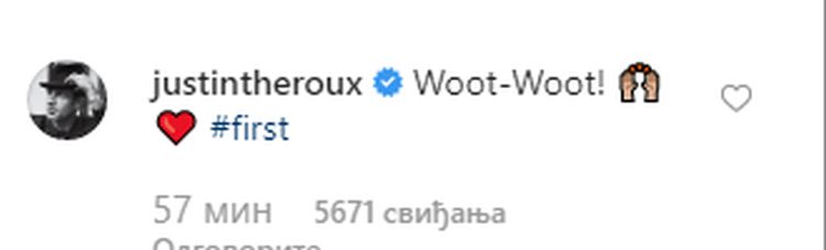 Među prvima joj je čestitao bivši suprug Džastin Teru:
