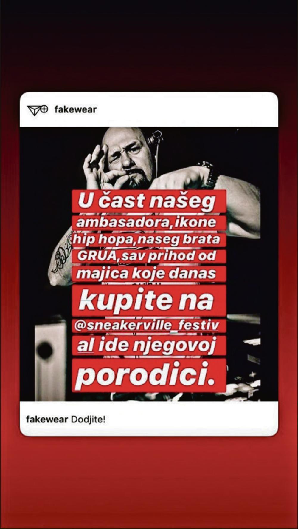 - U čast našeg ambasadora, ikone hip-hopa, našeg brata Grua, sav prihod od majica koje danas kupite na festivalu ide njegovoj porodici - istakao je Viktor, a zatim i Aleksandar.