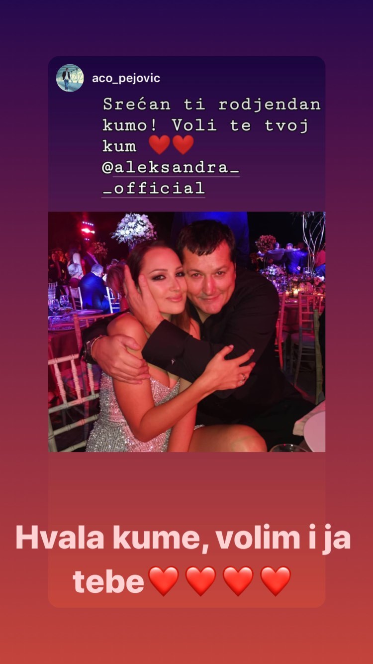 Među prvima su pevačici lepe reči uputili kum Aco Pejović i svekrva Zorica Nakić. Aleksandra nije propustila priliku da im se odmah javno zahvali na lepim željama.