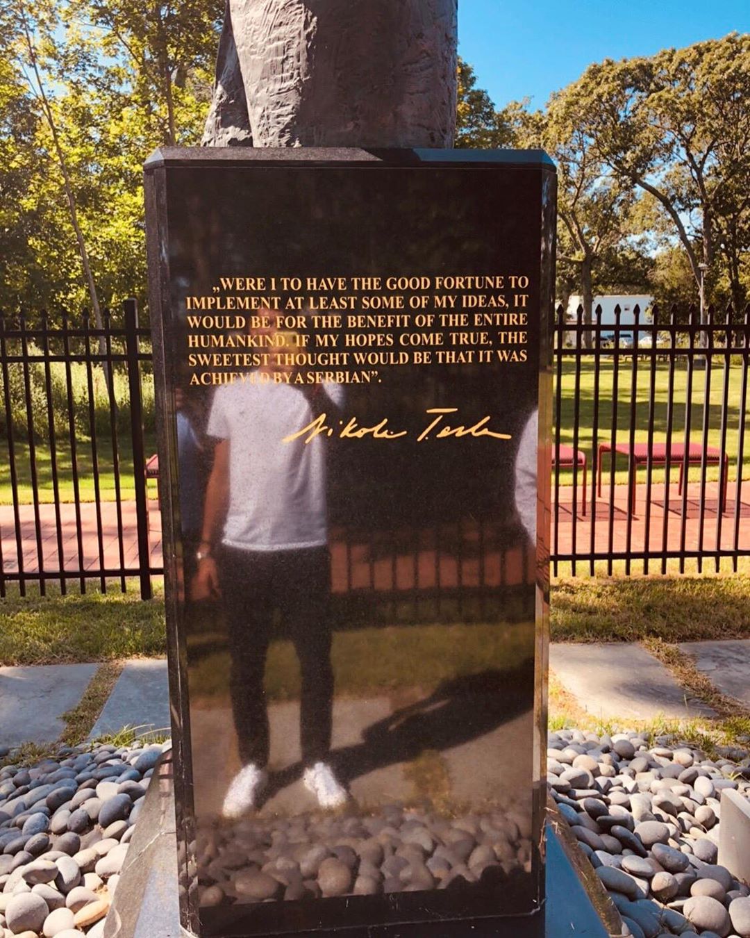 Na poleđini postolja spomenika Nikoli Tesli stoji misao koju je naš veliki naučnik izrekao i koja može da posluži kao još jedan detalj u moru sjajnih stvari koje je ostavio svetu, prenosi Kurir Sport.