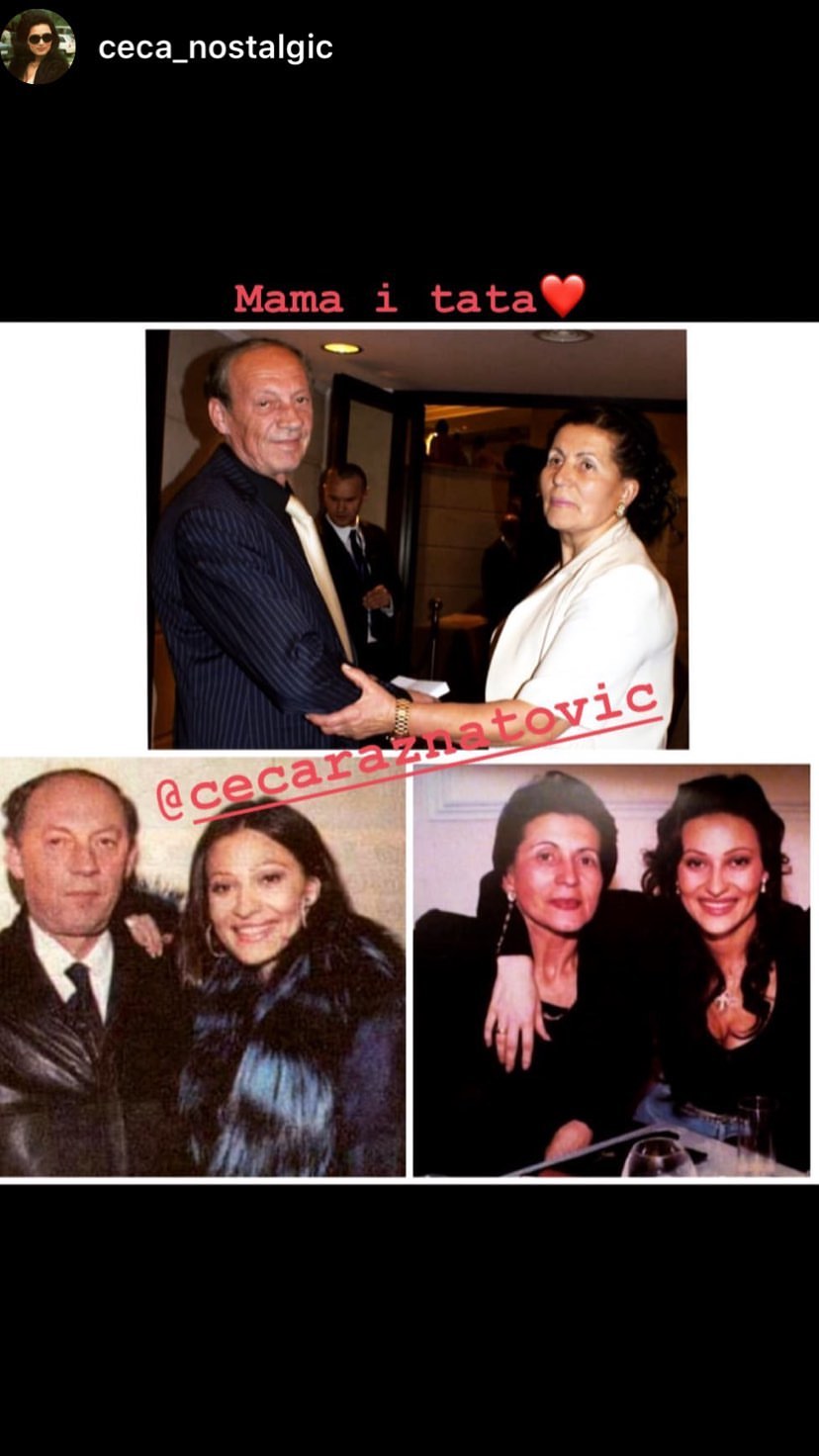 Ceca je s ljubavlju napravila kolaž od par starih fotografija, dodavši samo: "Mama i tata", a svi njeni fanovi koji su videli objavu na Instagram storiju mogli su samo da zaključe da je mama "kriva" za njenu lepotu i osmeh.