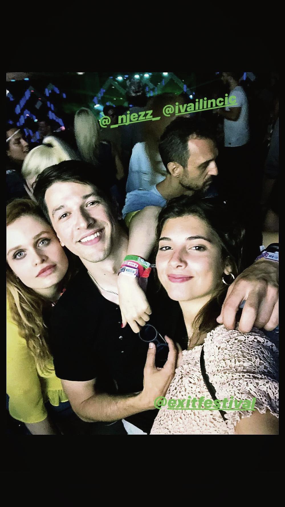 A Viktor se snašao, te je drugi dan festivala ispred Dens arene dočekao zoru sa svoje dve lepe koleginice - Minom Sovtić, ćerkom Anice Dobre, i Ivom Ilinčić.