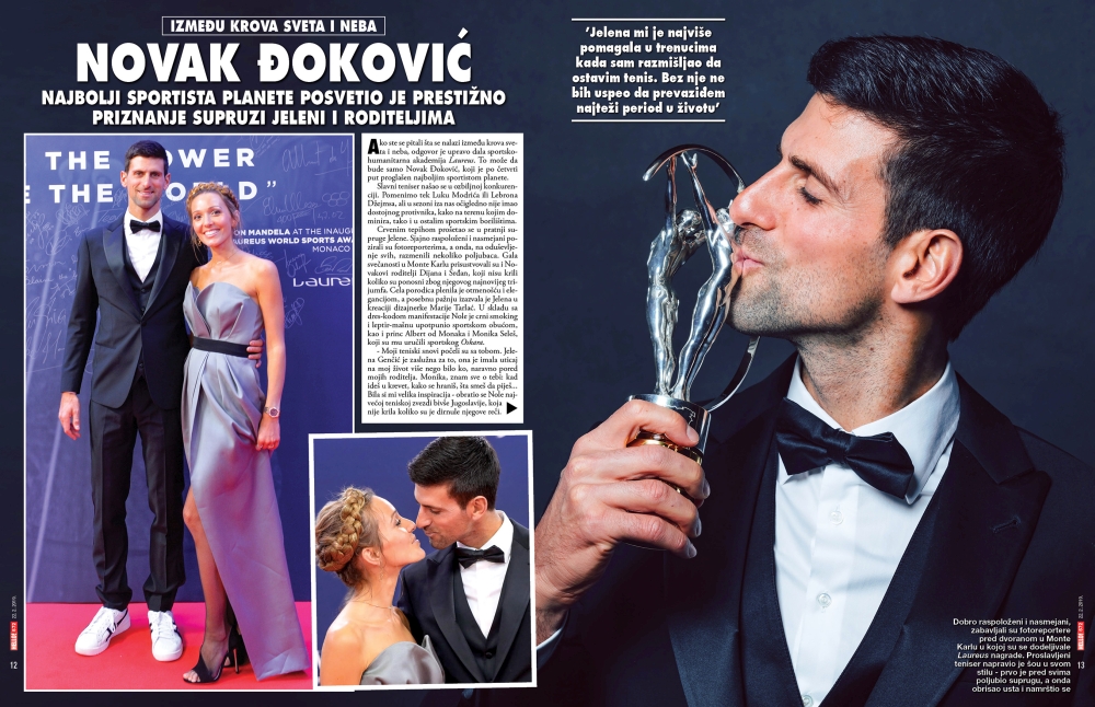 Novak Đoković, najbolji sportista planete posvetio je prestižno priznanje supruzi Jeleni i roditeljima