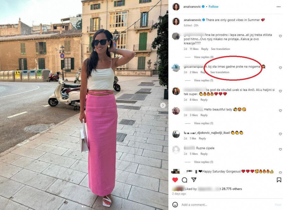 Jedan komentar je posebno bio neprikladan, a tiče se prstiju na nogama Ane Ivanović, ali čini se da bivša teniserka komentare ne čita, pa je tako sve ostavila i nijedan nije obrisala.