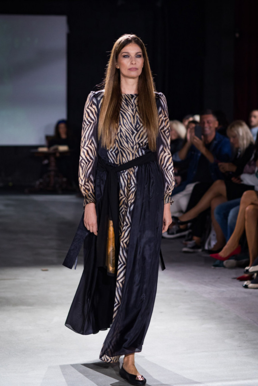 Defile manekenki u prostoru nekadašnjeg bioskopa Balkan pratila je muzička tema, koju je na gitari izveo kreatorkin suprug Veljko Kuzmančević.