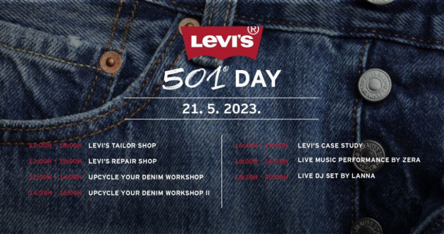 Od 20. do 21. maja 2023. godine u galeriji Štab u prizemlju šoping centra Galerija, imaćete priliku da se upoznate sa istorijom brenda Levi’s i modela 501®, da učestvujete u upcycling radionicama, dobijete savete vodećih srpskih stilista, te da učestvujete u razmeni džinsa i drugim zanimljivim aktivnostima.