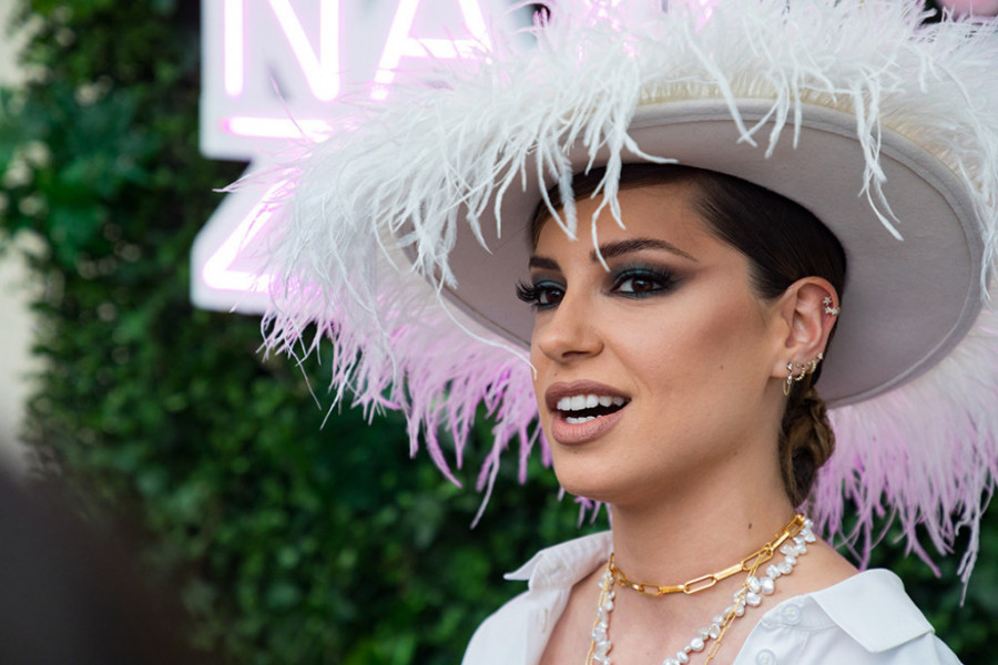 Ovog puta pevačica nije želela da šešir ostane jedini asesoar, već je ponela i prelep nakit brenda „Koncept45“, koji se savršeno slagao uz njen kompletan autfit.