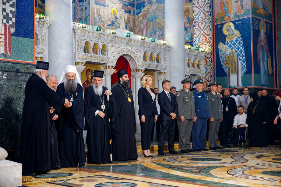 Ako baš pišete o tome, u crkvu žene treba da ulaze u suknji i pokrivene glave. Nije lepo videti ženu u pantalonama kako stoji sa crkvenim velikodostojnicima. Očigledno Kisićka i nije vernica, nažalost već je tu po službenoj dužnosti. A što se tiče vašeg komentera da je dobro obučena to je u suštini skroman, pristojan izgled ali ne za crkvu.