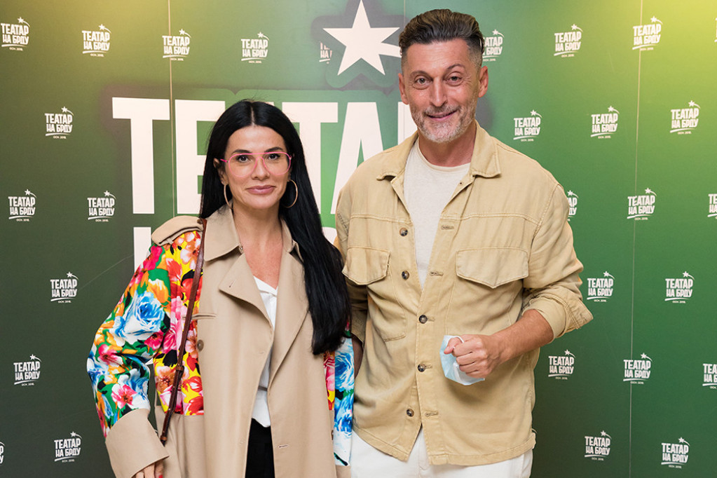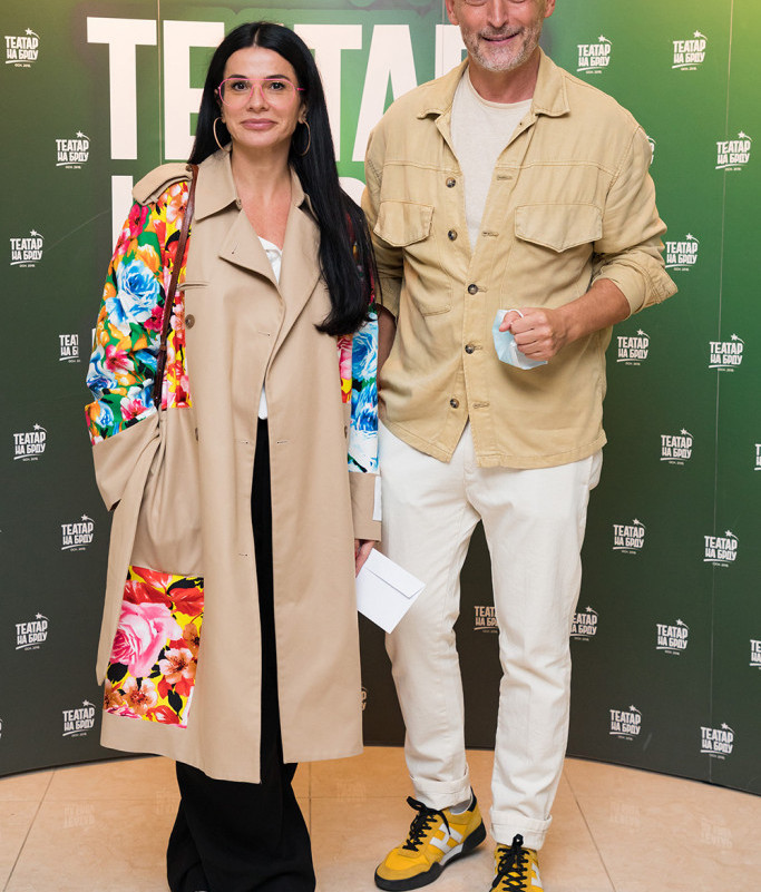 Ovog puta, za odlazak u pozorište, izabrali su trendi oker nijansu idealnu za vedre jesenje dane. Lepa voditeljka je, kao poseban detalj, dodala šarenu ešarpu koju je nonšalantno prebacila preko mantila.