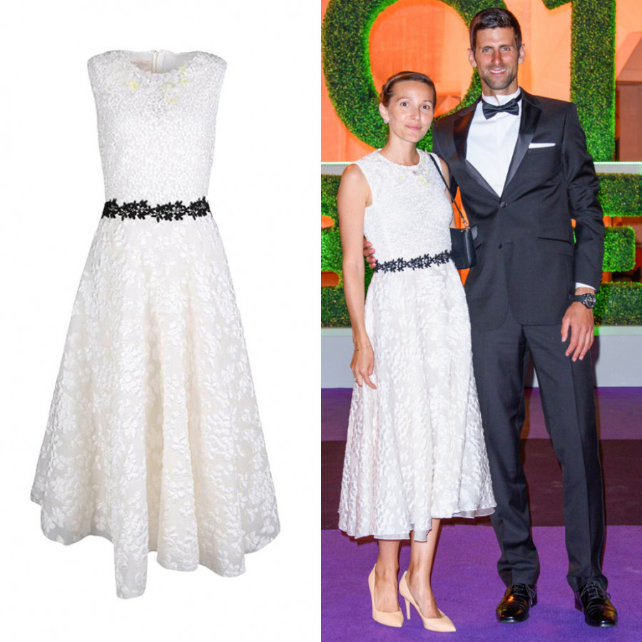 Iz svečane vimbldonske lože jedan Novakov meč je tog leta 2018. posmatrala u kratkoj narandžastoj haljini kuće Tularosa, sa floralnim motivima. Za nju je izdvojila 213 evra.