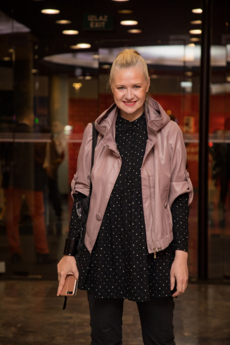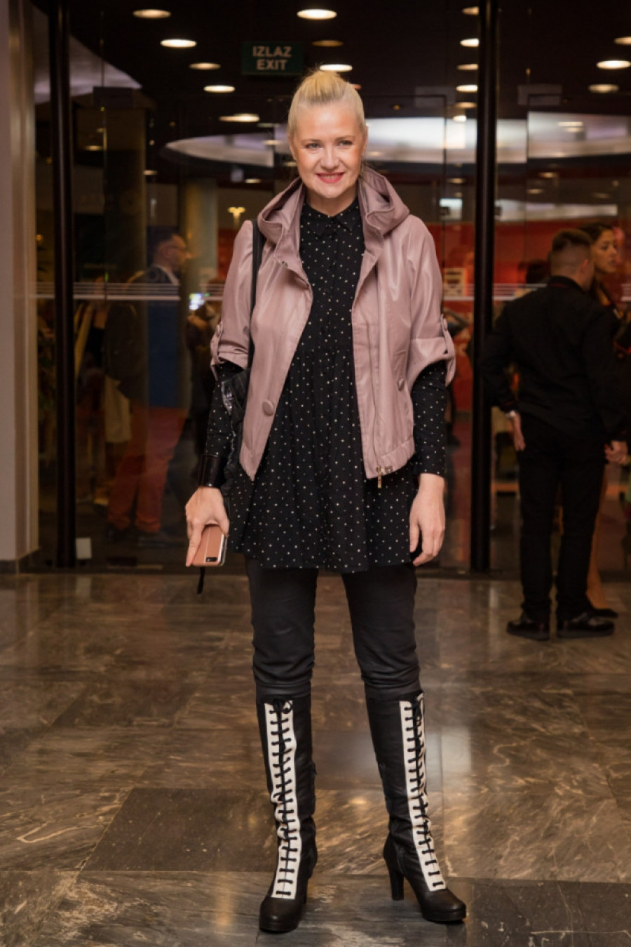 Iako u crnim pantalona i crnoj košulji na bele tufne, Ana Sofrenović osmehom je donela prelepu energiju. Odevnu kombinaciju razbila je puder roze kožnom jaknom i savršenim čizmama na štiklu, koje su celokupan stajling učinile više nego originalnim.