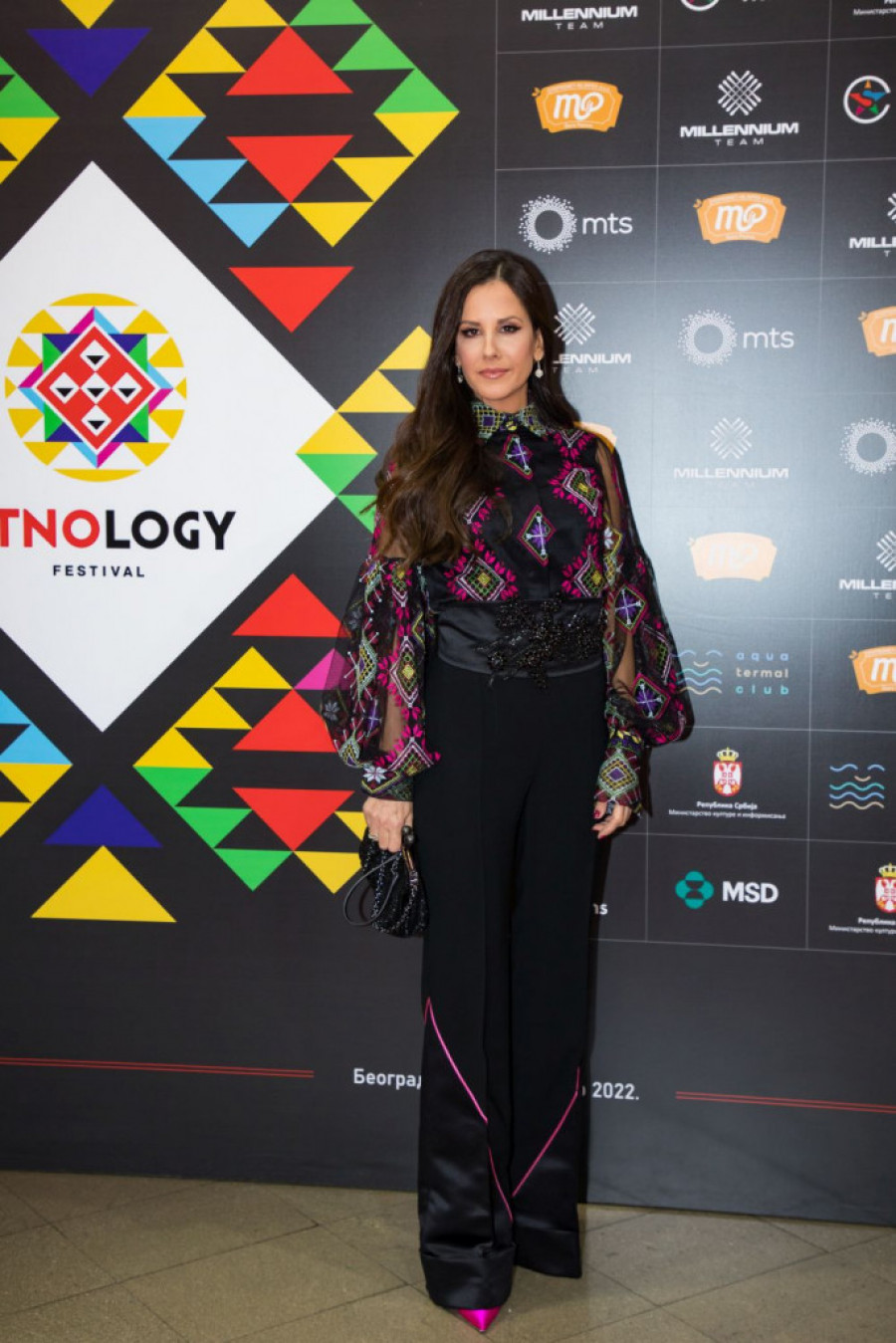 U duhu manifestacije u Etnografskom muzeju u Beogradu Tamara se pojavila u prelepoj bluzi prošaranoj etno motivima, ali i crnim pantalonama sa visokim pojasom. Akcenat je i ovog puta stavila na cipele, salonke u savršenoj roze nijansi, koje je uklopila uz šaru na pantalonama i košulji od tila.