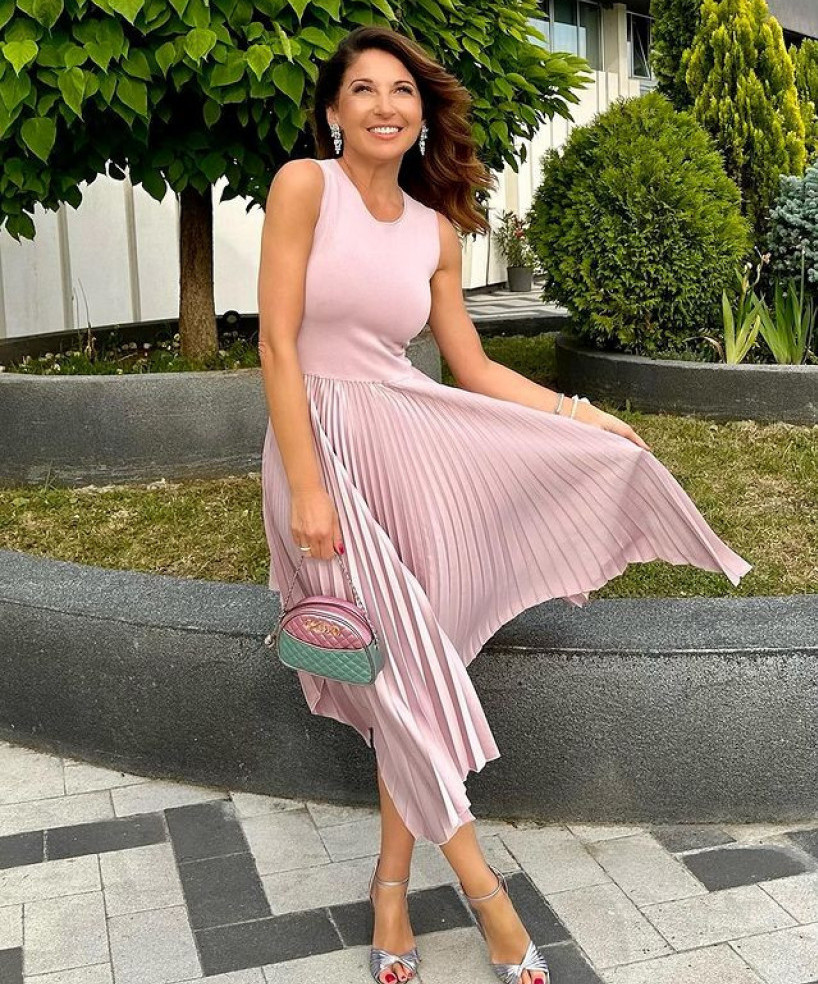 Model nežne roze nijanse u gornjem delu diskretno otkriva ramena, dok je drugi lepršav i nešto raskošnijeg kroja. Stajling, koji je popularna voditeljka upotpunila efektnim nakitom i sandalama, dobio je najviše ocene njenih pratilaca na Instagramu ‒ nije mogla da se odbrani od bujice komplimenata.