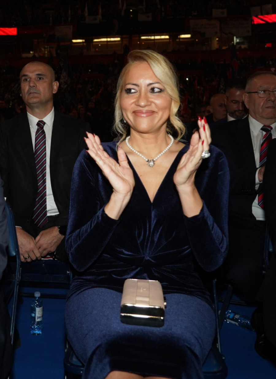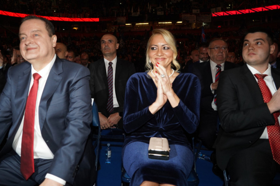 Sanja Dačić bodrila je supruga iz prvog reda i više puta njegovo govor nagradila aplauzom, pokazujući da je najveća podrška i oslonac uticajnom političaru. U nekom trenutku popela se na binu sa njihovom decom i pozdravila okupljene u dvorani.