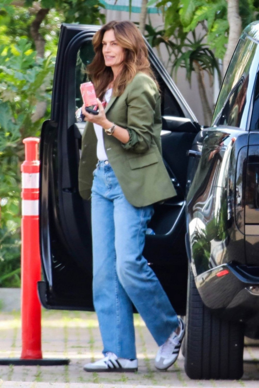 Kada nije supermodel, već obična žena, ili u njenom slučaju superžena, Sindi se oblači ležerno i nosi ravnu obuću. Izbegava da se šminka, kao što se vidi na ovim paparaco-fotografijama, nastalim pre nekoliko dana ispred njene kuće u Malibuu.