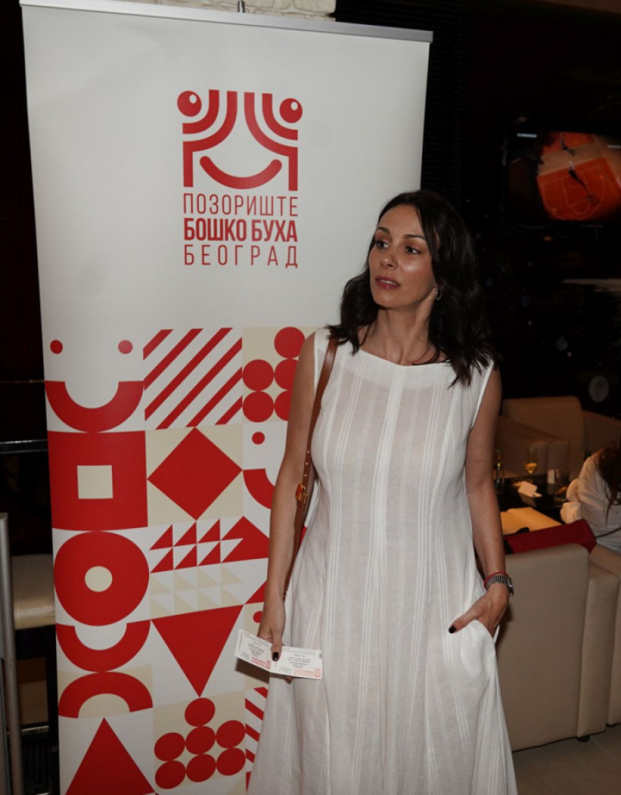 Na pozorišnu premijeru došla je u beloj haljini širokog kroja, uz koju je obula jednostavne “japanke”.