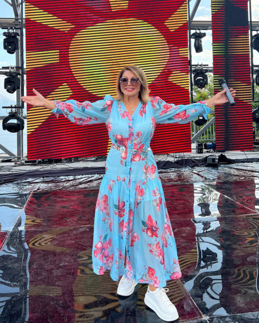 Haljinu je prošetala na muzičkom festivalu u Vodicama, a pozirajući na terasi hotela, s pogledom na popularno primorsko mesto, pesnički je poručila: Nigde nema te lepote...