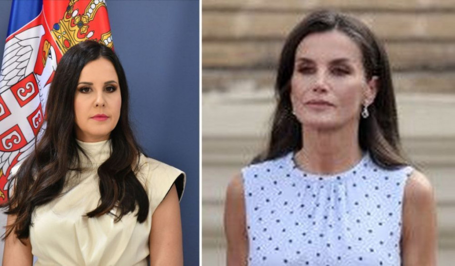 Zanimljivo je da sličnu košulju ima i kraljica Leticija. Poput naše prve dame nosi je u kompletu sa uskom suknjom.