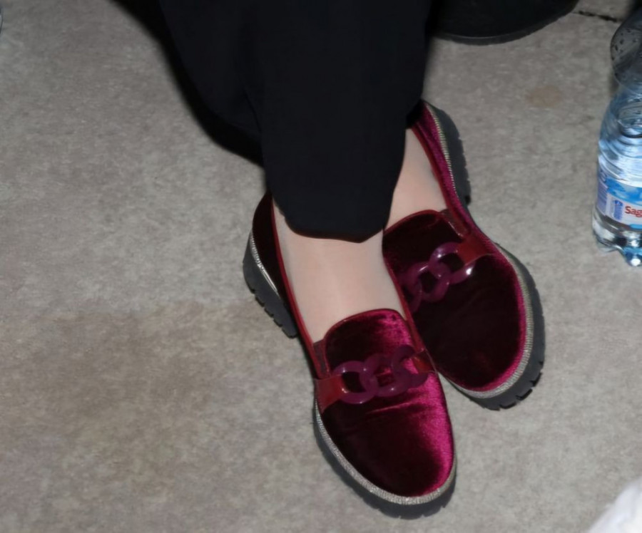 Ravne cipele neobične boje odevnu kombinaciju Goce Šaulić učinile su izuzetnom, a imajući u vidu da je reč o modelu koji je pre svega udoban, jasno je da ne izlazi iz mode.