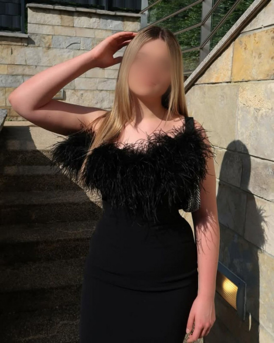 Odevena u usku crnu haljinu, sa perjem u predelu dekoltea, pozirala je pre nego što se zajedno sa sestrom i tatom, Duškom Tošićem, zaputila na venčanje porodičnog prijatelja.