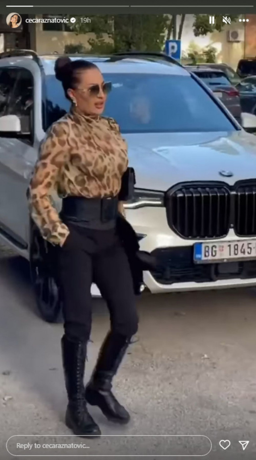 Na fotografiji smo mogli da vidimo Cecu, u smeloj tigrastoj bluzi koju je upotpunila crnim pantalonama i ravnim crnim čizmama.