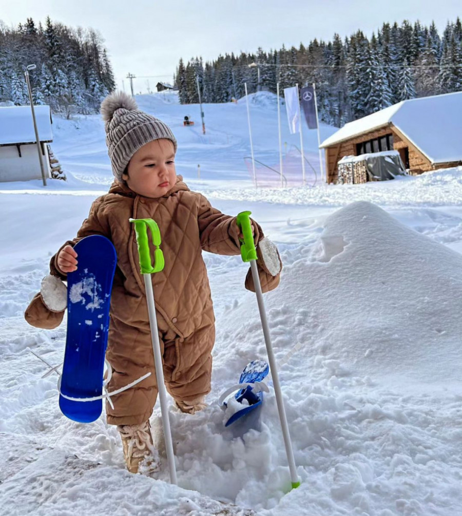 – Vera stavi skije na Vlašiću, ubrza kod Busovače, predahne na Jahorini i završi kod bake u Šekovićima – napisao je sin Panonskog mornara uz set fotografija koje su toliko slatke da bi mogle da otope i okolni sneg.