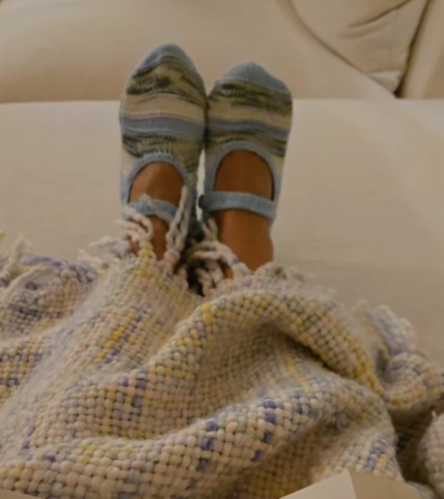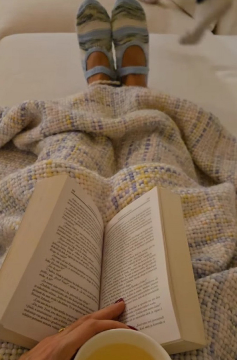 Tako smo videli da Tamara Vučić u kućnoj varijanti nosi ležernu garderobu i obavezno zimsko ćebence, a tu su i čarape-papuče, savršeno udobne za zimske dane i igru sa decom.