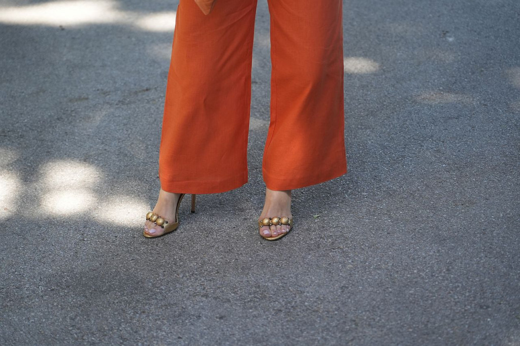 Vatreno narandžasti komplet sa dubokim dekolteom savršeno je istakao Cecin preplanuli ten. Međutim, modni znalci nisu mogli da odvoje pogled sa njenih luksuznih sandala.