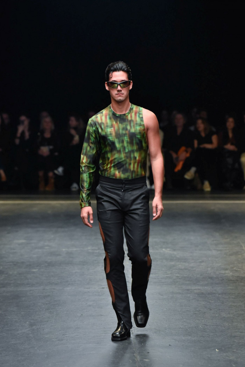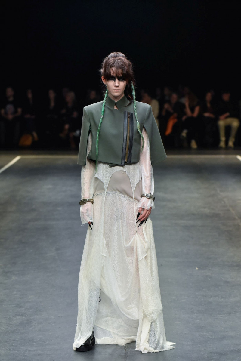 Za kraj ove večeri, predstavio se brend No Rich Parents, čiji je osnivač mladi kreator Aleksandar Latinović dobitnik nagrade „Boris Nikolić“ za savremeni modni izraz za 2024. godinu, a poznat je po svom duhovitom i autentičnom pristupu modi. Kolekcija “The First of May” istražuje spoj japanske i američke radničke kulture, preispitujući značenje radne odeće u postindustrijskom dobu. Polazeći od ideje radničke uniforme kao vizuelnog i socijalnog koda, kolekcija transformiše klasične forme muške radne odeće u savremeni streetwear.