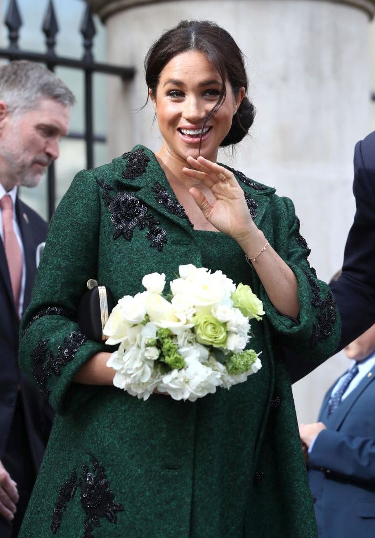 Princ i njegova supruga Megan Markl došli su zajedno na krštenje u crkvi Svetog Nikolasa u Glosterširu. Megan, čiji je termin za porođaj u aprilu, obukla je široki kaput kako bi pokrila veliki trudnički stomak.
