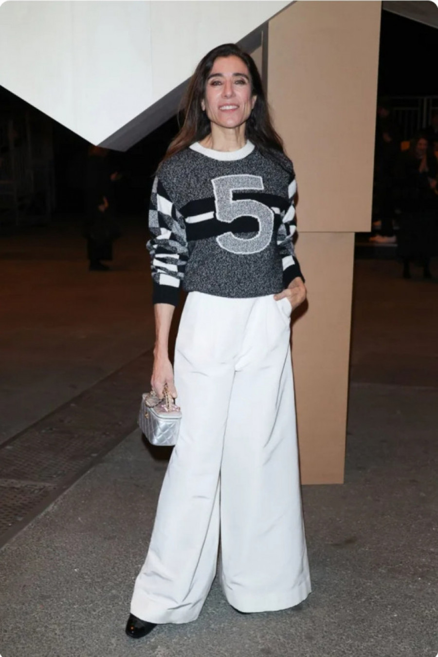 U širokim belim pantalonama i tamnoplavom džemperu na pruge sa mitskim Chanel 5 logotipom i malom srebrnom torbom istog brenda – nesumnjivo, jednostavna i besprekorna odevna kombinacija Blanke Li bila je povod za brojne naslovne strane koje prate poznati januarski modni događaj.