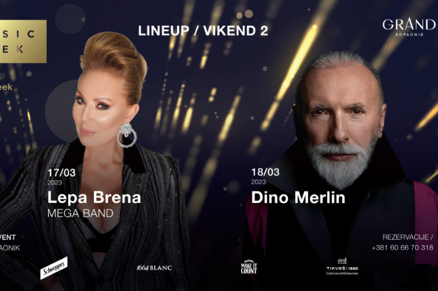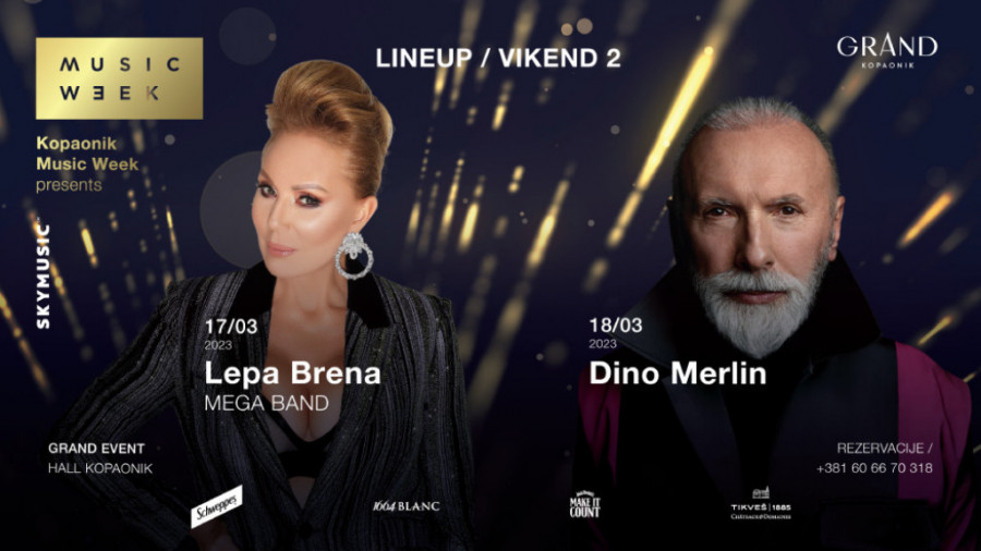 Kada je objavljeno da će sedmi po redu Kopaonik Music Week prvog vikenda otvoriti Saša Matić sa Milicom Pavlović kao specijalnim gostom 10. marta, i Željko Joksimović, koji će nastupiti odmah sutradan na istom mestu – u Event sali luksuznog Grand hotela Kopaonik stigla je najava novih senzacionalnih koncerata! Naime, narednog vikenda Festival će obeležiti nastupi nekih od najvećih regionalnih muzičkih imena ‒ Lepe Brene i Dina Merlina!