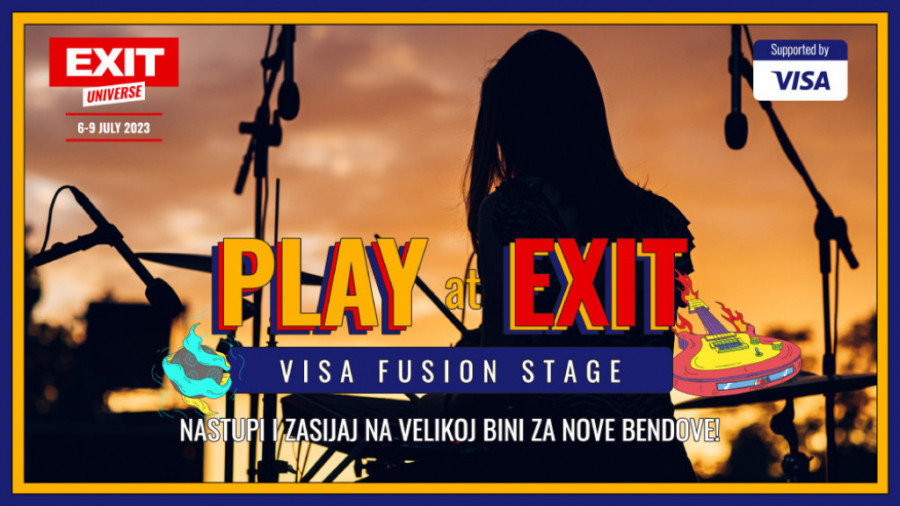 Tradicionalni Play at EXIT konkurs i ove godine pruža autorskim muzičarima priliku da zasijaju na jednoj od najstarijih i najuticajnih festivalskih bina, Visa Fusion, na taj način podstičući rad i razvoj novih izvođača. Odabrani će imati priliku da pokažu svoj talenat na ovogodišnjem izdanju EXIT festivala – prijave su otvorene od 24. maja do 7. juna 2023, a grupe i muzičari mogu se prijaviti putem aplikacije na ovom linku.