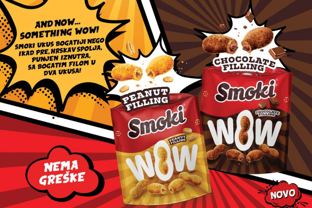 Budući da mladi potrošači danas žive za WOW momente, Smoki WOW je kreiran upravo sa idejom da im to i omogući prilikom svakog hrskanja. Novi Smoki došao je u do sada neviđenom, atraktivnom obliku koji dodatno pojačava vezu sa kikirikijem, glavnom karakteristikom Smoki brenda.