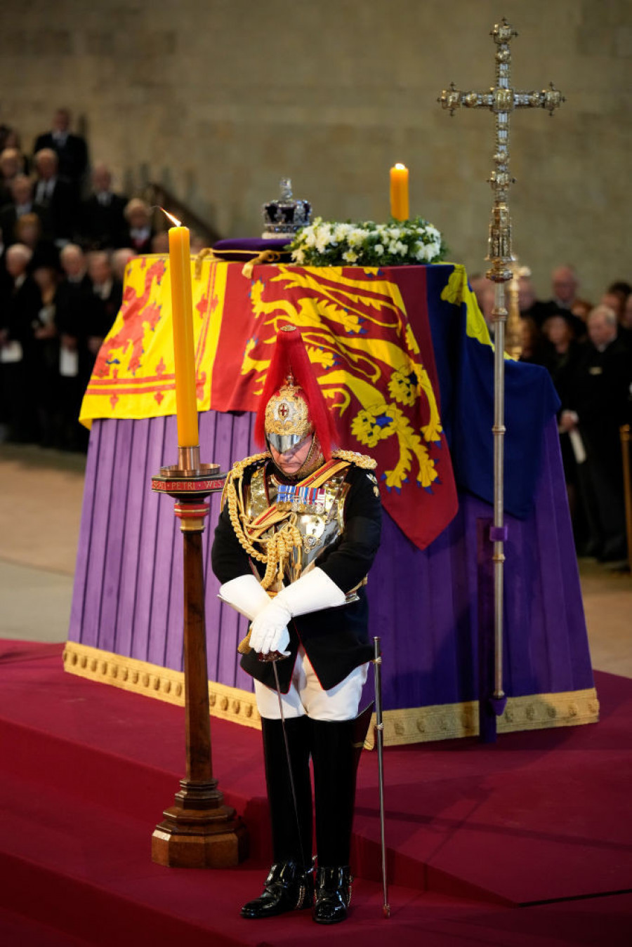 Dok su se melodije koje je svirao orkestar Kraljevske garde smenjivale sa zvonima Big Bena, lafet sa kovčegom lagano se kretao prema zgradi Parlamenta. Držeći korak, Elizabetu su pratila deca – kralj Čarls, princeza Ana, prinčevi Endrju i Edvard, unuci Vilijam i Hari, pripadnici svih jedinica britanskih oružanih snaga.