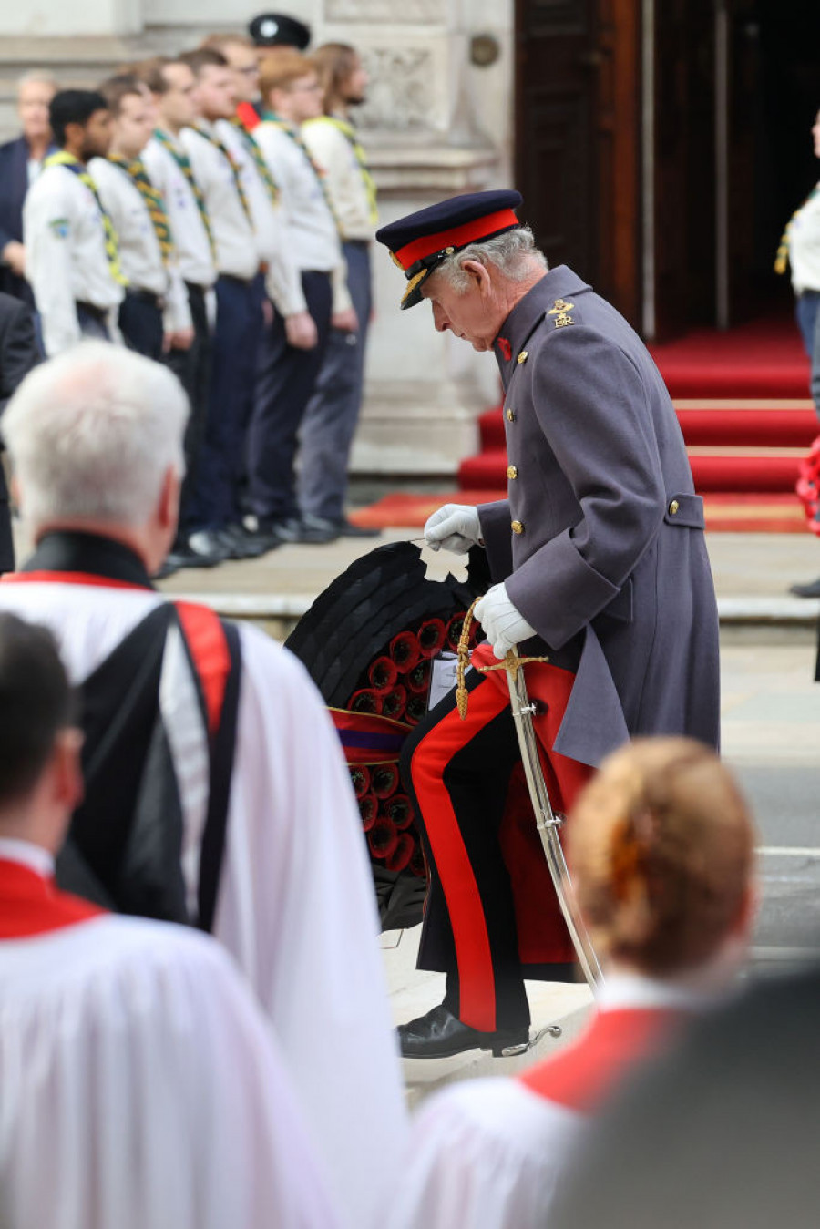 Kralj Čarls i princ Vilijam položili su vence u svečanim vojničkim uniformama. Sa terase su ih nemo posmatrale supruge, kraljica pratilja Kamila i Kejt Midlton, princeza od Velsa. U skladu sa prilikom, nosile su crne odevne kombinacije ukrašene crvenim makovima, simbolom praznika. Sinoć su članovi porodice prisustvovali tradicionalnom programu u Rojal Albert holu.