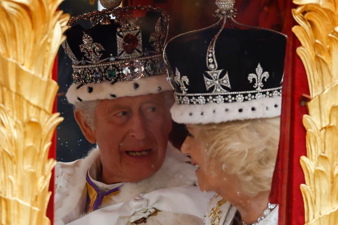 Po izlasku iz opatije Čarls i Kamila ušli su u Zlatne državne kočije i odvezli se do Bakingemske palate dobro poznatom trasom, prošavši pored zgrade Parlamenta, Trafalgar skvera i ostalih znamenitosti, dok su ih okupljeni pozdravljali.