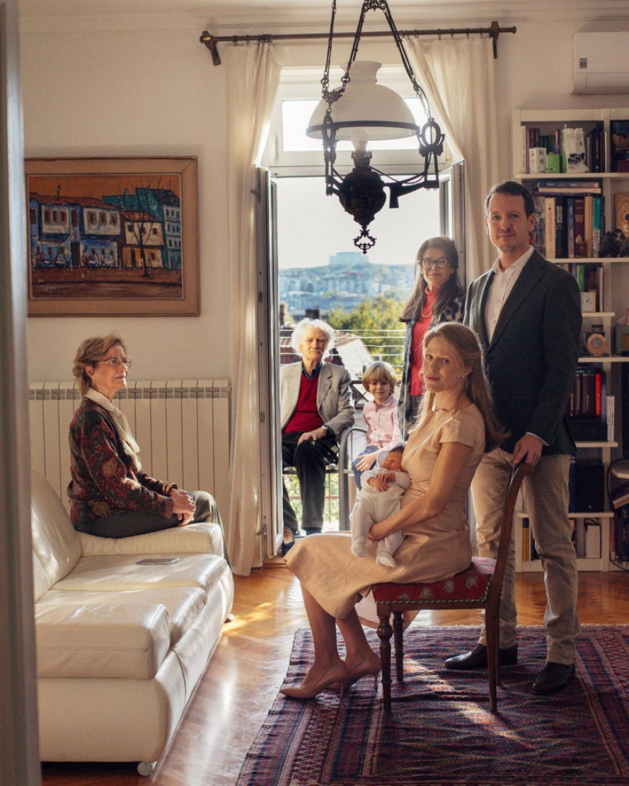 Na drugoj fotografiji, takođe nastaloj u njihovom beogradskom domu punom ljubavi i topline, vidimo prinčevski par sa decom, Daničinim roditeljima Ciletom i Bebom Marinković, kao i Filipovom majkom Marijom de Glorijom, koja je došla da vidi unuku.