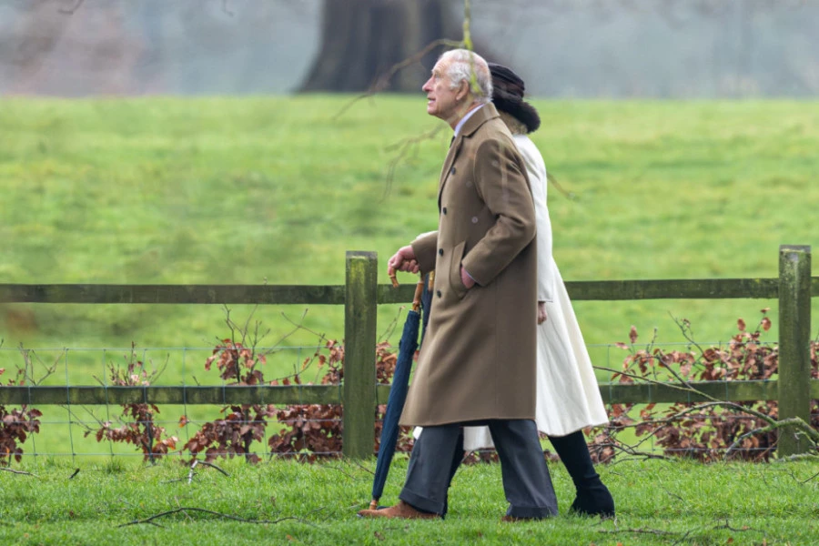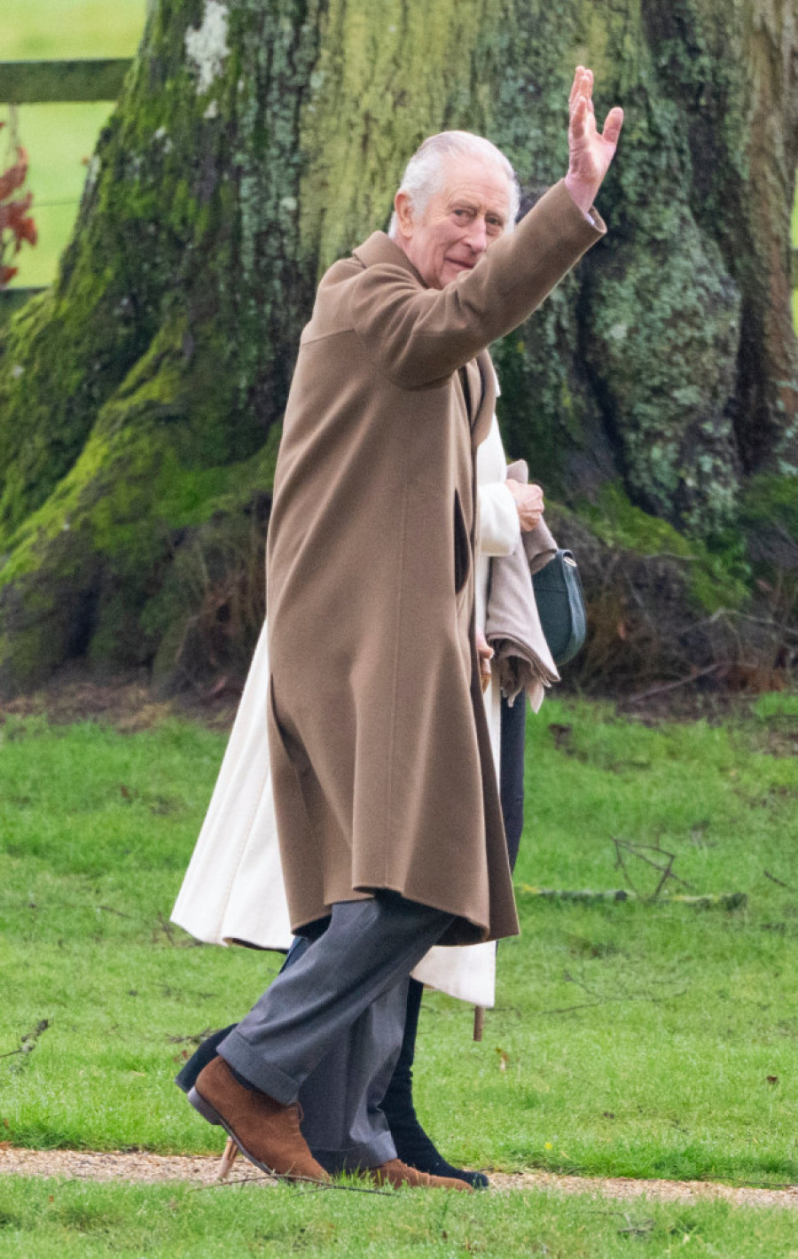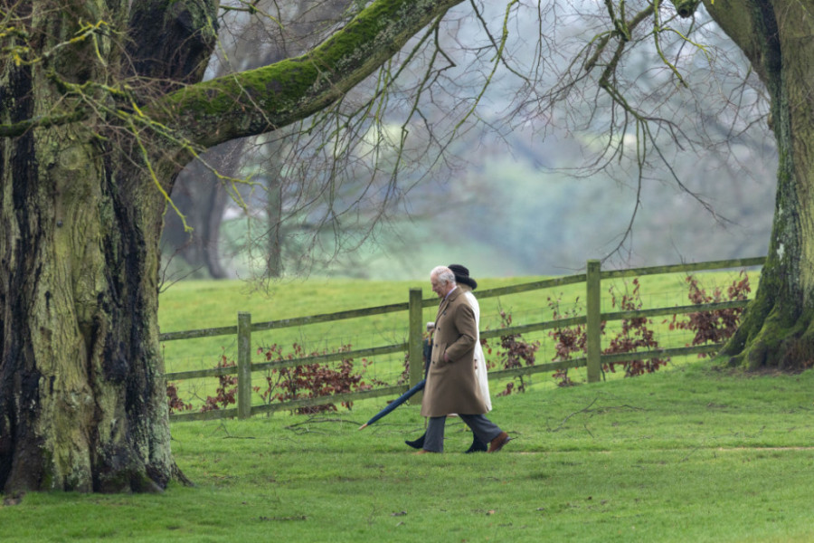 Prisustvovali su nedeljnoj misi u crkvi "Svet Marija Magdalena", koja se nalazi u sklopu kraljevskog poseda. Mahnuo je okupljenima, oslanjajući se na kišobran.