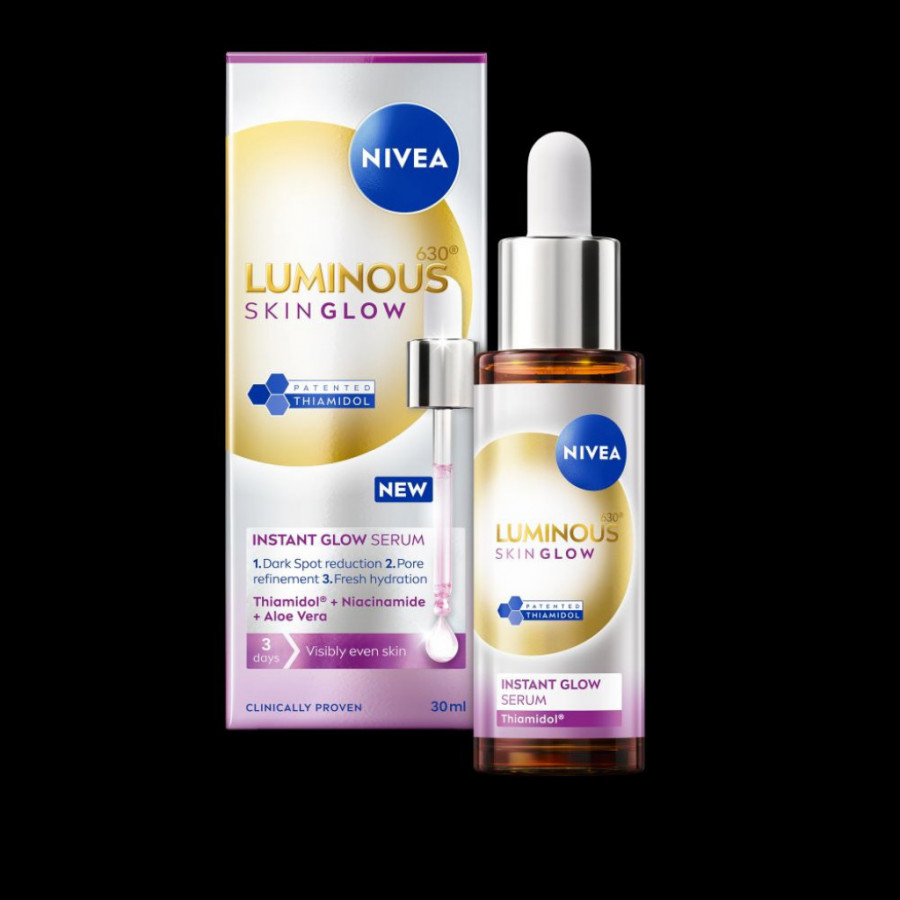 NIVEA LUMINOUS630® SKIN GLOW serum za ujednačen sjaj kože je prvi NIVEA proizvod koji na više načina doprinosi blistavosti kože, a nežna veganska formula s Thiamidolom®, niacinamidom i aloe verom pogodna je za sve tipove kože, čak i osetljivu zbog čega je efikasna na svim nijansama tena.