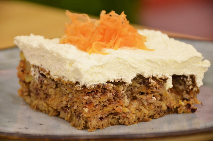 Priprema: Sastojke za kolač dobro umutite mutilicom i sipajte u podmazan kalup, te pecite oko četrdeset minuta na 180⁰C. Kada se kolač dobro ohladi, prelijte ga glazurom, čije ste sastojke izmešali spatulom. Dekorišite sitno rendanom šargarepom.