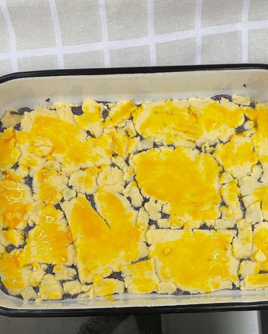 - Ako odlučite da stavite bezglutensko brašno kao ja, znajte da nećete moći da napravite štrudlu već ćete male komadiće sastavljati u jednom redu, fil pa opet red testa, i tako slažete dok ne dobijete predivan kolač.