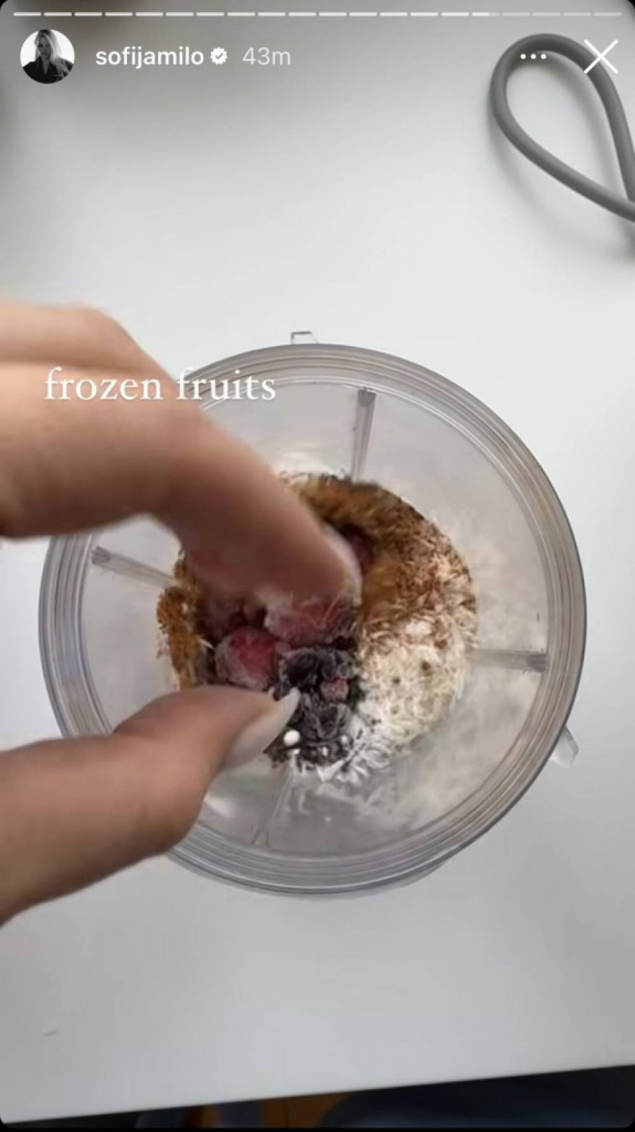 Nijedan smuti ne može da prođe bez voća, tako da Sofija ubacuje smrznute jagode, borovnice i kupine, kao i jednu celu svežu bananu.