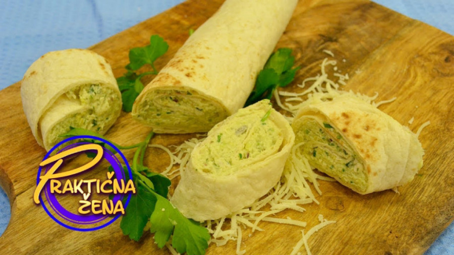 Dobijeni namaz naneti na tortilje, urolati i iseći na komade. Prijatno!