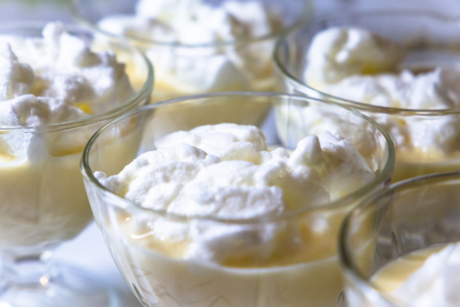 Kada se krem prohladi, sipajte ga preko oblaka od belanaca. I to je sve. Po želji možete posuti sirupom od karamele ili čokoladnim mrvicama. I uživajte! Već na prvi zalogaj vratićete se u detinjstvo.