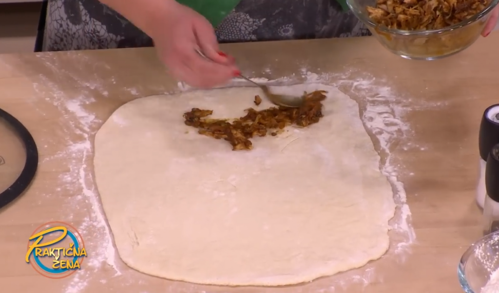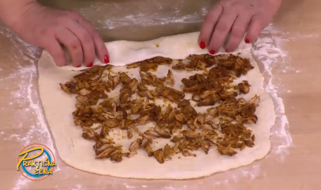 Prvo se priprema aromatični nadev od svinjskog karea, crnog luka i bogatog BBQ sosa, a zatim i meko testo koje se puni, gotovo istopljenim, mesom. Na kraju se sve urola i peče dok ne porumeni.