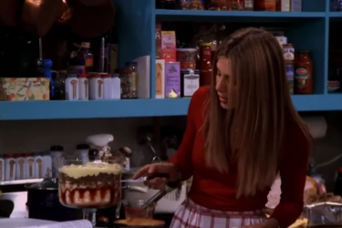 Ovaj trenutak savršeno prikazuje Rejčelin lik koja je bila dobronamerna ali vrlo trapava u kuhinji. Recept Dženifer Aniston za kolač iz serije "Prijatelji" postao je sinonim za kulinarske gafove koje se pamte, a fanovi ga i danas prave na tematskim zabavama. Sada ga možete isprobati i vi.