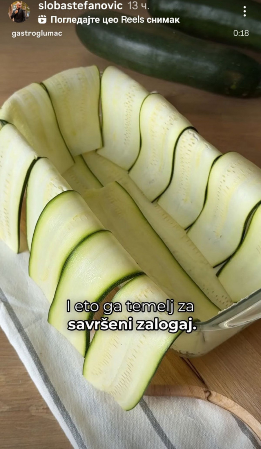 - Dodajem luk, paradajz, još malo sira, zatvaram sa tikvicama i pravac rerna – poručio je Slobodan Stefanović, dodajući u opisu videa: