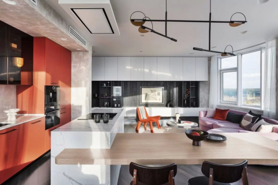 Enterijer sa elementima industrijskog stila uredio je arhitekta Jevgenije Švetsov koga su angažovali vlasnici mladi bračni par sa osmogodišnjom ćerkom.