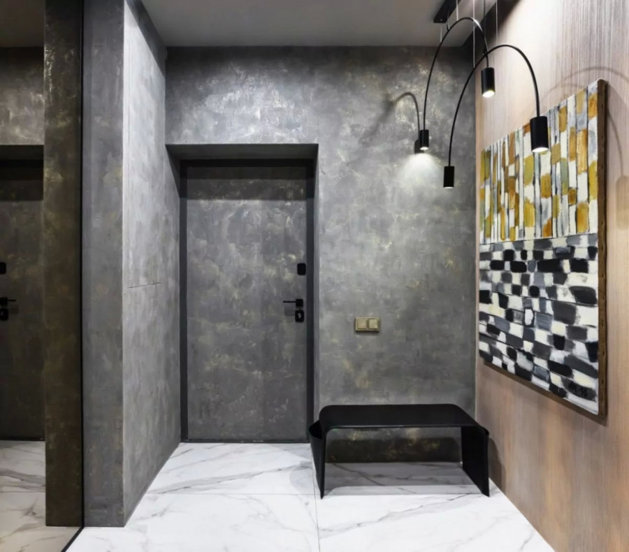 Hodnik odlikuje neobična zidna dekorativna tehnika, što je bio glavni razlog njegovog jednostavnog uređenja. Opremljen je crnom klupom koja je postavljena do samih ulaznih vrata, iznad koje je mesto našla slika koju je izradio mladi umetnik, prijatelj vlasnika stana.